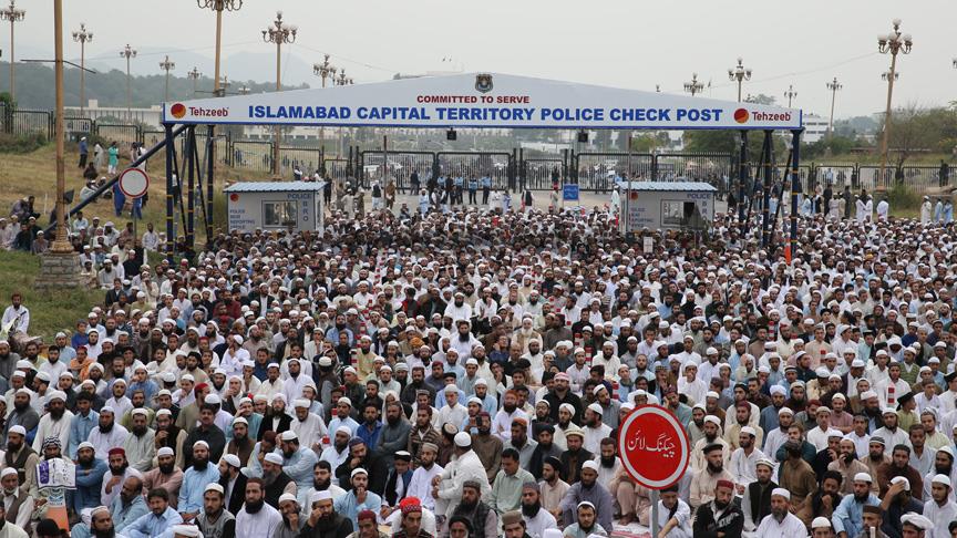 Otoyolları kapatan ve eyalet yönetim binalarının etrafında toplanan göstericiler, başkent İslamabad'da Anayasa Mahkemesi gibi devlet daireleri ile büyükelçiliklerin bulunduğu D-Chowk bölgesi girişinde toplandı.
