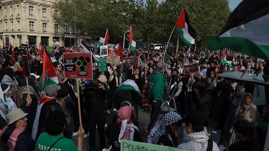 Paris'te göstericiler İsrail'in Refah'a yönelik kara saldırısını protesto etti