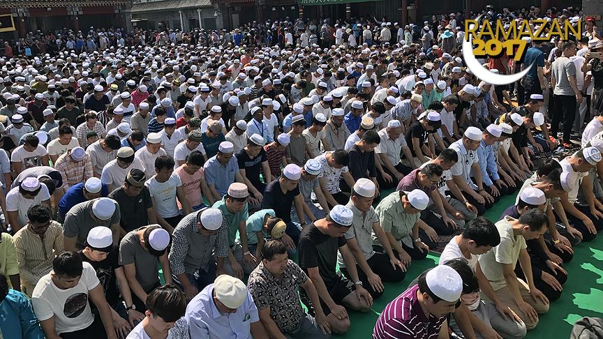 Ramazan Bayramı'nın bir gün sonra kutlanmaya başlandığı Çin'deki Müslümanlar, bayram namazını kılmak için camileri doldurdu.