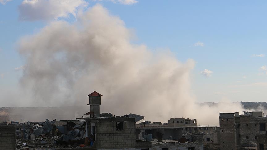 AA muhabirinin sivil savunma yetkililerinden aldığı bilgiye göre, Rus savaş uçaklarının Kinda ile Zaimiye köylerine düzenlediği hava saldırısı sonucu 6 sivili yaşamını yitirdi, 8 kişi yaralandı.