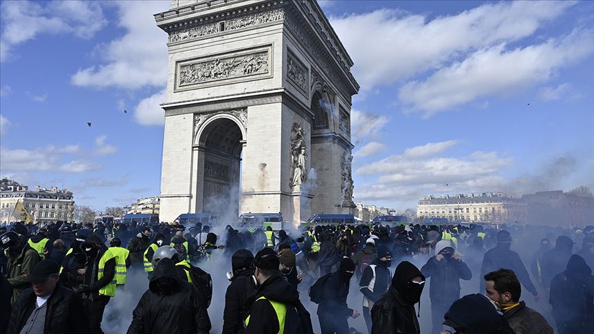 Paris'in Champs-Elysees Caddesi'nde toplanan, polise taş ve şişe atan göstericiler, birkaç barikatı ateşe vermiş, birçok mağaza ve restoranı yağmalamıştı. Eylemciler, birkaç ünlü markanın mağaza ve restoranını da ateşe vermişti.