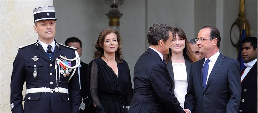 Hollande ve hayat arkadaşı Valerie Trierweiler, Nicolas Sarkozy ve eşi Carla Bruni'yi Elysee Sarayı'nın merdivenlerine inerek birlikte uğurladı.