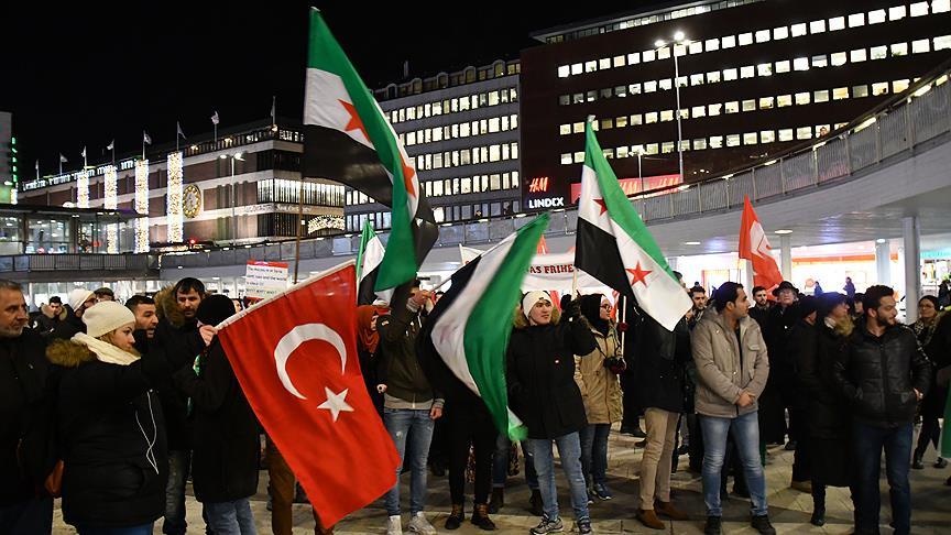 İsveç'in başkenti Stockholm'de, Suriye rejimi ve rejime destek veren ülke ile milislerin Halep'teki saldırıları protesto edildi.