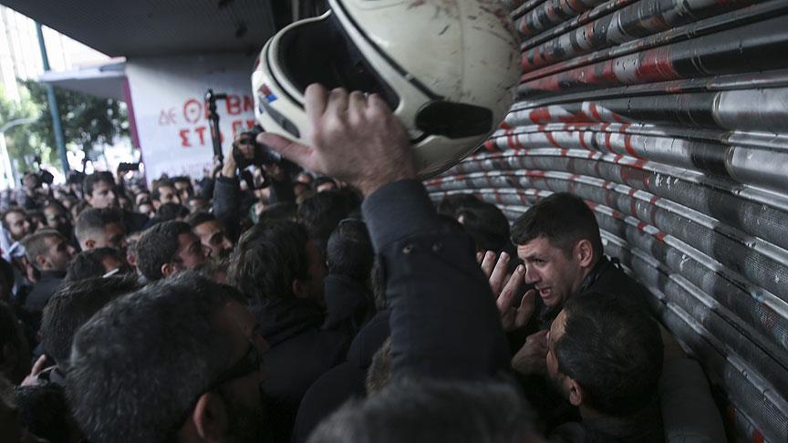 Hükümet ve kreditörlerin ekonomi politikalarına karşı slogan atan göstericilerden bir kısmının, bakanlık binasını işgal etmesi üzerine polis ile arbede yaşandı.