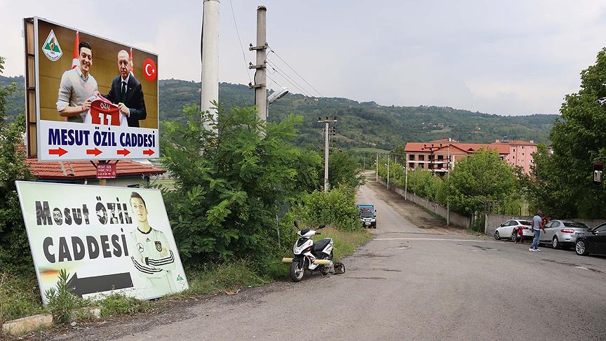 Devrek Belediyesi tarafından Özil'in, Almanya Milli Takımı formasıyla fotoğrafının yer aldığı tabela, Cumhurbaşkanı Recep Tayyip Erdoğan ile Londra'da birlikte çektirdiği fotoğrafının bulunduğu dev tabelayla değiştirildi.