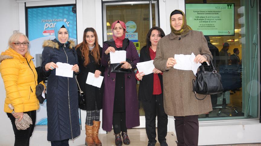 AK Parti Mardin Kadın Kolları Başkanı Hülya Hakimoğlu ve partililerden oluşan bir grup bankaya giderek dolarlarını bozdurdu. Partililer, İnsani Yardım Vakfı'nın (İHH) Halep kenti için başlattığı "un bağışı" kampanyasına 60 lira bağışta bulundu.