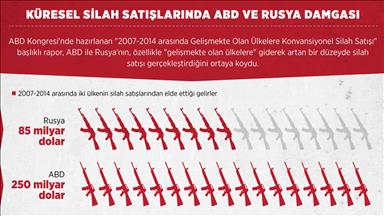 En çok silah satan ülkelerin başını ABD çekti. Batı Avrupa ülkelerinden 30 firma ise toplam silah satışının yüzde 29'unu kaydetti.