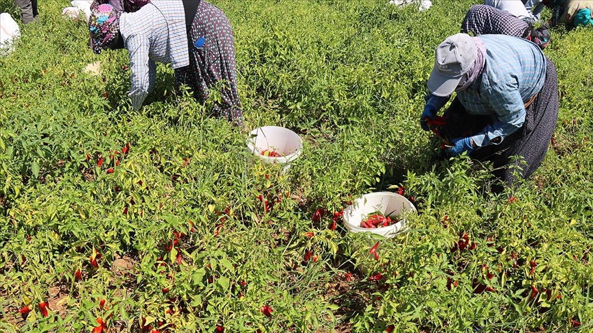Köyün verimli tarlalarından toplanan kırmızı biberler, açık alanlara serilerek kurutulup köydeki fabrikalarda işlendikten sonra Türkiye'nin dört bir yanına ve yurt dışına gönderiliyor.