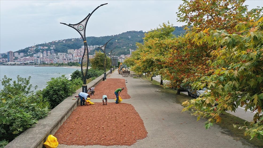 Yüksek rakımlı köylerdeki sıcaklık farkı ve çiy nedeniyle ürünü kurutmakta zorlananlar, Karadeniz Sahil Yolu kenarındaki kaldırımları tercih ediyor.