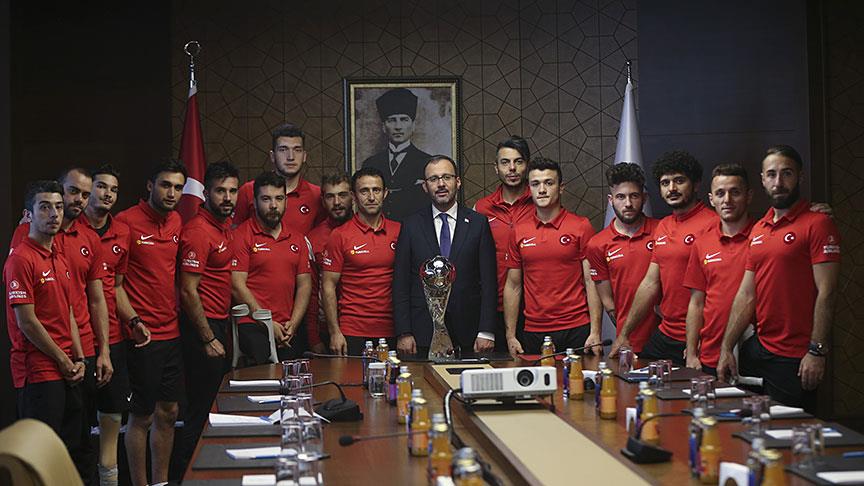 Ankara'da Bakanlık merkez binasında gerçekleşen buluşmada açıklamalarda bulunan Gençlik ve Spor Bakanı Mehmet Muharrem Kasapoğlu, Ampute Milli Futbol Takımı'nın, milletin gönlünde şampiyon olduğunu belirterek, "Sizin mücadeleniz hiçbir şeyden yılmamanın, hayata karşı meydan okumanın mücadelesidir." ifadesini kullandı.