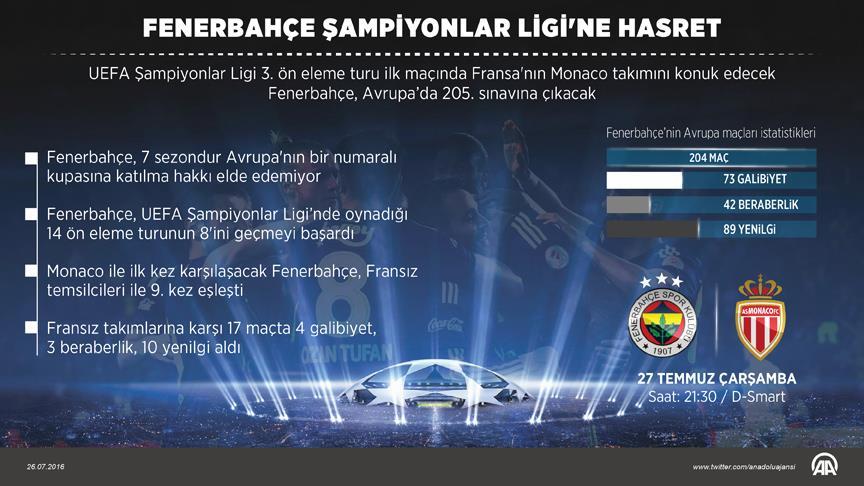 UEFA Şampiyonlar Ligi 3. ön eleme turunda Fransa'nın Monaco takımıyla ilk maça çıkacak Fenerbahçe, 7 sezondur Avrupa'nın bir numaralı kupasında yer alamıyor.