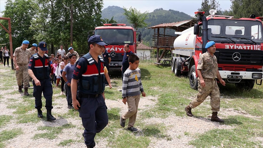 İhbar üzerine bir ilköğretim okulunda yangından etkilenen çocukların olduğu bilgisini alan jandarma ekipleri, olay yerine giderek, öğrencileri güvenli bölgeye ulaştırdı.