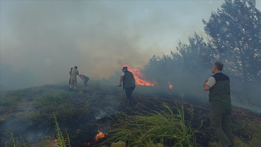 Rüzgarın etkisiyle yayılan alevler, ekiplerin çalışmasını zorlaştırdı.