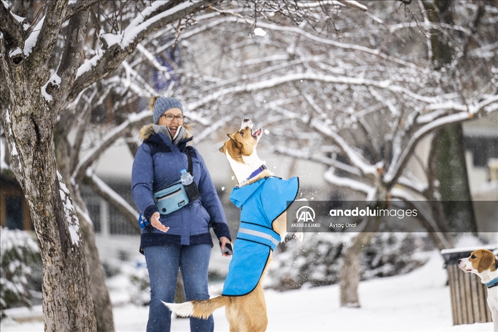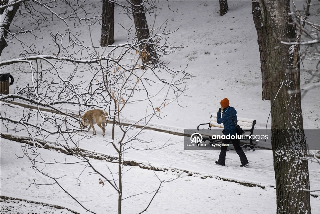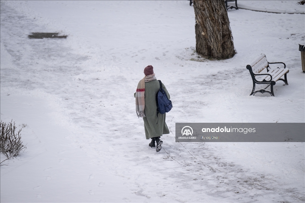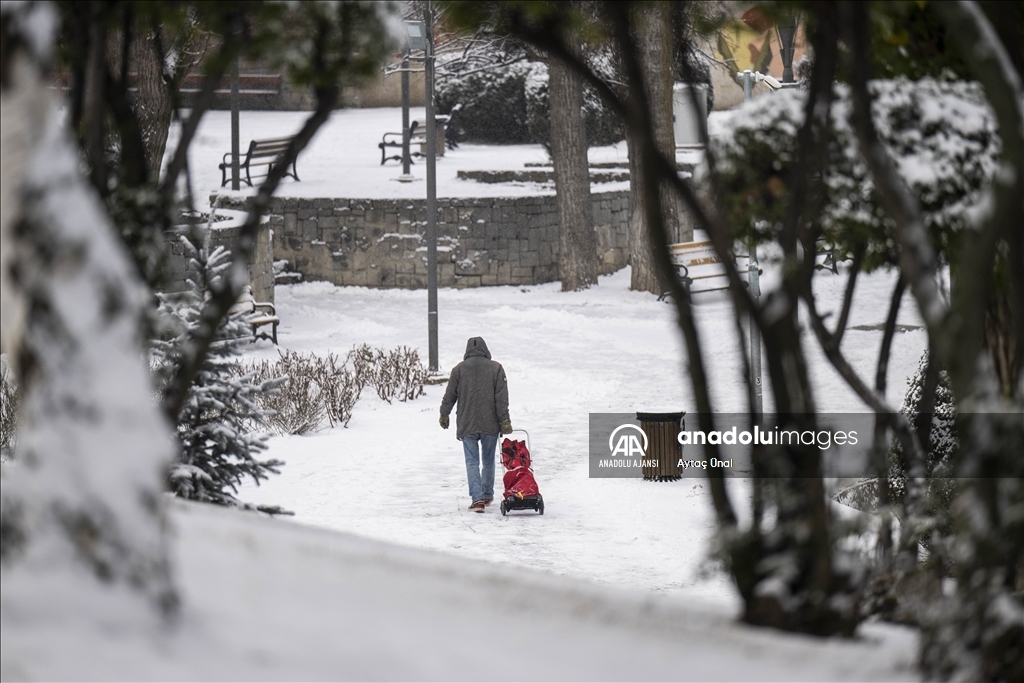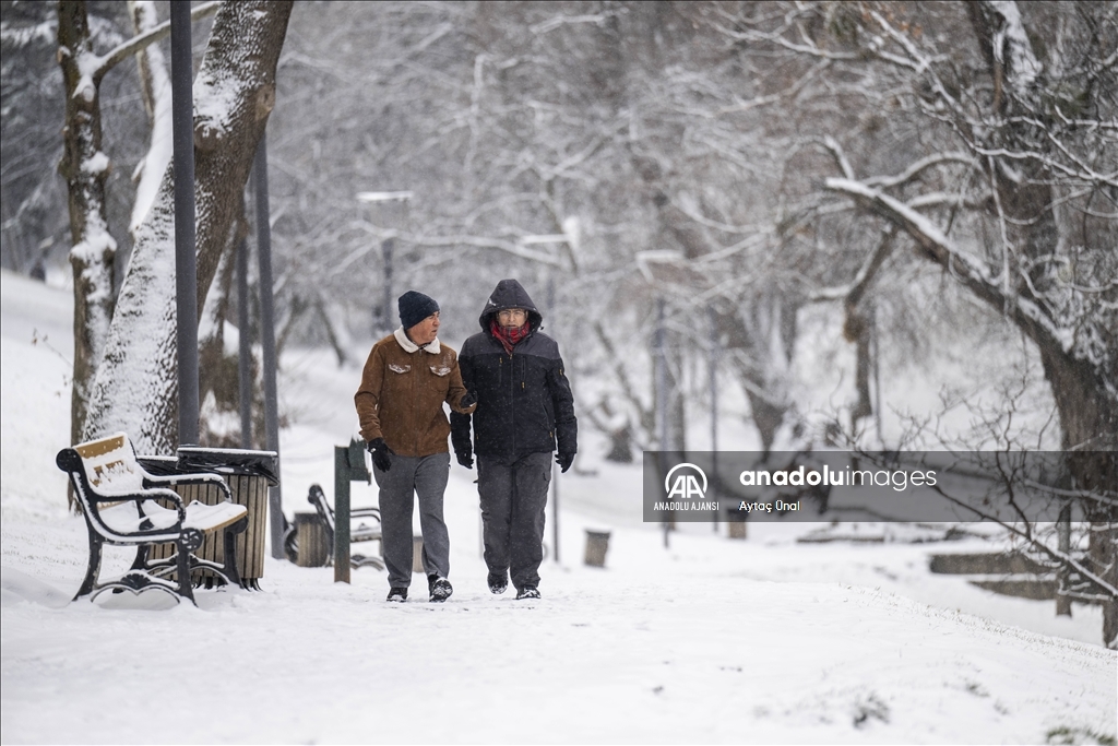 Başkent genelinde devam eden kar nedeniyle Anıtkabir, TBMM, başkentin simgelerinden Atakule ve çevresi beyaza büründü.