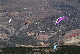 Babadağ'daki pistlerden pilotlar eşliğinde yamaç paraşütüyle uçuş yapan macera tutkunları, Ölüdeniz'in manzarasını kuş bakışı izleme fırsatı buldu.