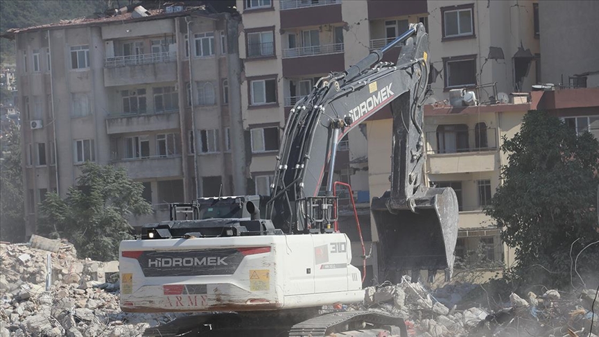 Hatay'da ağır hasarlı binaların yıkımı sürüyor