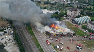 Kahramanmaraş merkezli ve 10 ili etkileyen depremler sırasında dün henüz belirlenemeyen nedenle konteynerlerde çıkan yangın gece boyunca devam etti.