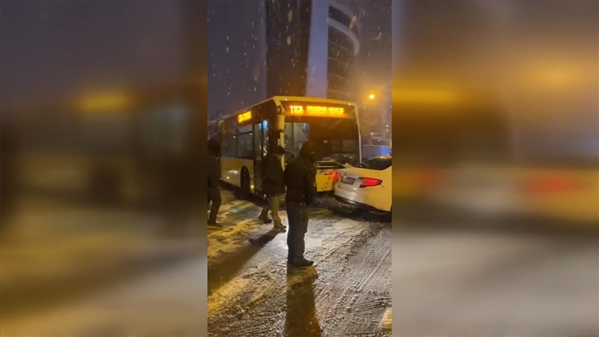 Beykoz'da bir toplu taşıma aracı, yokuş aşağı inemeyince yolcular otobüsten inerek yürüyerek yollarına devam etti. Kontrolden çıkan bir başka toplu ulaşım otobüsü de kayarak bir otomobile çarptı.