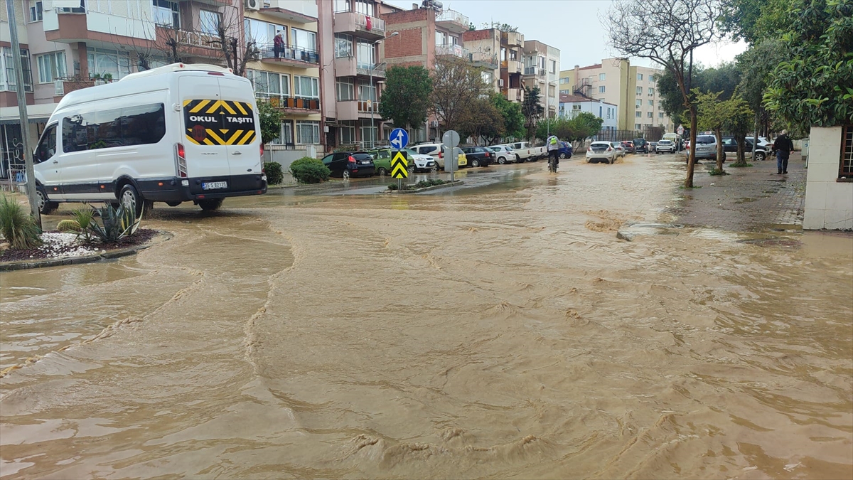 İzmir'in Ödemiş ilçesinde etkili olan sağanak hayatı olumsuz etkiledi