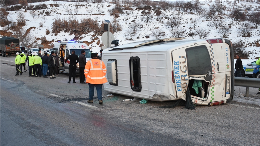 Malatya Valiliğinden kazaya ilişkin yapılan açıklamada, minibüsün seyir halindeyken tekerinin patladığı ve kazada 10 kişinin yaralandığı belirtildi.