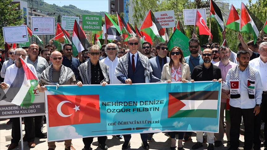 İlahiyat Fakültesi öğrencisi de olan Yalman, İsrail'in 7 Ekim 2023'ten bu yana başta Gazze Şeridi olmak üzere Filistin'de masum sivillere yönelik düzenlediği saldırıların eşi benzeri görülmemiş bir insani felakete yol açtığını söyledi.