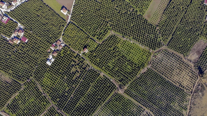 Suyun yükselmesiyle göle dönüşen narenciye bahçeleri dronla görüntülendi.