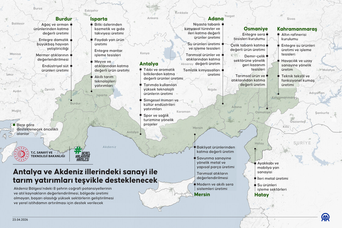 Antalya ve Akdeniz illerindeki sanayi ile tarım yatırımları teşvikle desteklenecek