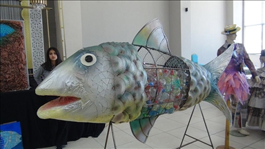 Şadiye Muzaffer Turhan Anadolu Lisesi'nde öğretmenlik yapan Maksude Güney, AA muhabirine yaptığı açıklamada, insanların tüketim çılgınlığına gönderme yaparak farkındalık oluşturmak amacıyla atıklardan eserler yapmaya karar verdiğini söyledi.