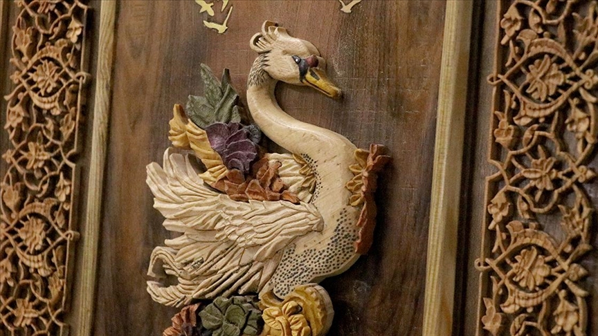 Eserini Türk barok üslubunun simgelerinden kuğu motifiyle zenginleştiren Aslan, yaklaşık üç aylık bir çalışmanın ardından ahşap tablosunu tamamladı.