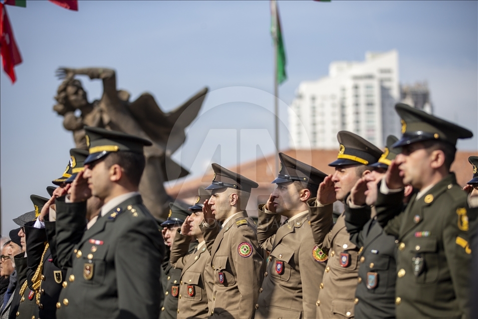 Azerbaycan’ın Ankara Büyükelçiliği ve Keçiören Belediyesince, Keçiören’in Etlik semtindeki Azerbaycan Meydanı'nda “Hocalı Soykırımı'nı Anma Programı” düzenlendi. Programa katılan Azeri subay adayları ve öğrenciler, parktaki anıta karanfil bıraktı. ( Aytaç Ünal - Anadolu Ajansı )Aytaç Ünal