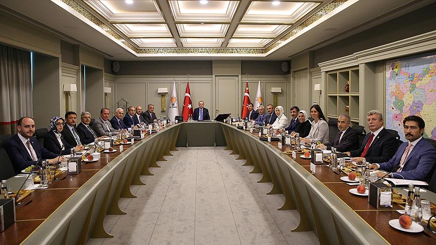 AK Parti Genel Merkezi'nde basına kapalı olarak saat 14.25'te başlayan toplantı, 5 saat 15 dakika sürdü.