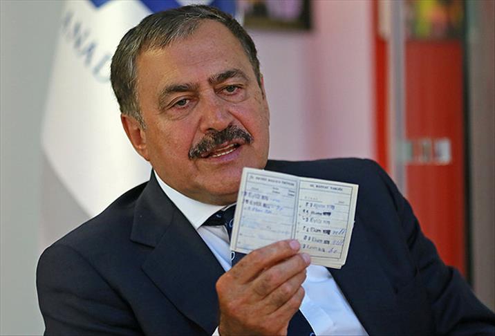 Orman ve Su İşleri Bakanı Veysel Eroğlu, muhalefet partilerinin asgari ücret vaatlerini de eleştirdi. "Sırtlarında yumurta küfeleri yok. Bu vaatler artık alaya alınmaya başlandı" diyen Eroğlu, bir vatandaşa ait 1979 yılına ait karneyi gösterdi. Eroğlu, şöyle konuştu:
