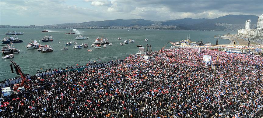 Başbakan Erdoğan, partisinin, İzmir'de, Gündoğdu Meydanı'nda düzenlediği mitingde, halka hitap etti.