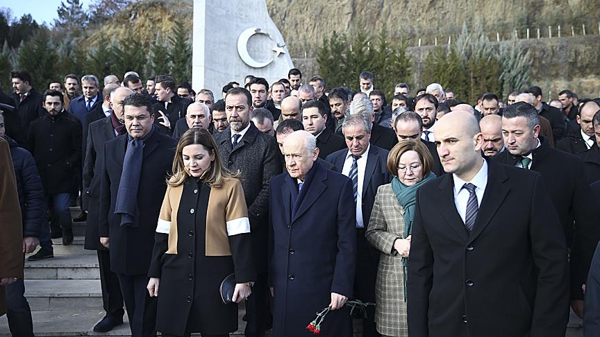 Toplantılara katılmak üzere ilçeye gelen Genel Başkan Bahçeli, otele gitmeden önce Ülkücü Şehitler Anıtı'nı ziyaret etti. Bahçeli ve beraberindekiler, Kur'an-ı Kerim tilavetinin ardından dua ederek şehit isimlerinin yazılı olduğu alana karanfil bıraktı.