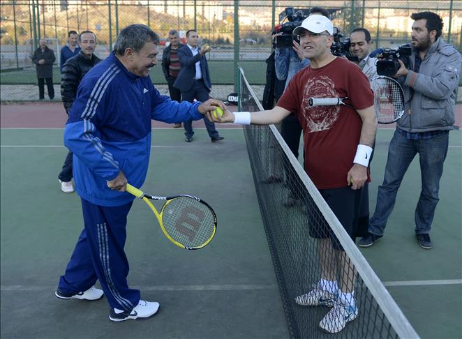 Bakanlar Şimşek ve Eroğlu, bir süre ısınma hareketleri yaptıktan sonra tenis oynarken, bazı milletvekilleri ise yürüyüş yapmayı tercih etti.