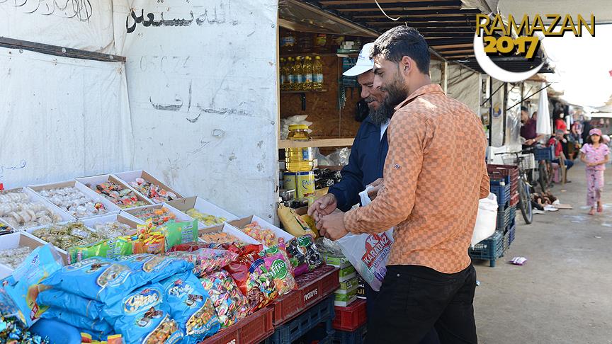 Çocuklarıyla yaşamlarını sürdürdükleri alanlarda bayram temizliği yapan sığınmacılar, gıda ve temel ihtiyaç malzemelerini de kamptaki marketler ve kendi kurdukları çarşıdan temin etti.