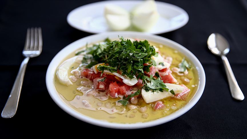 Piyazın yanında ızgara köfte, bol tahin ve cevizle hazırlanan kabak tatlısı tercih ediliyor.