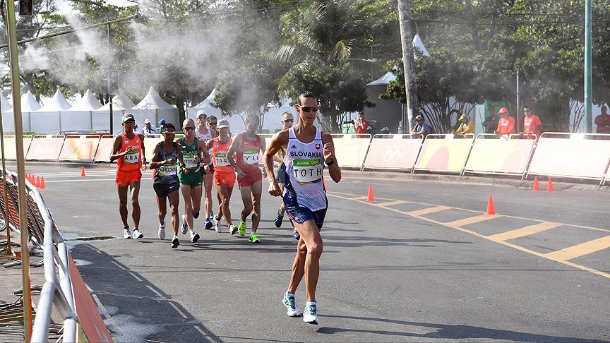 Erkekler 50 km yürüyüşte son dünya şampiyonu Slovak Matej Toth, 3.40.58'lik süresiyle rakiplerini geride bırakarak altın madalyaya ulaştı.