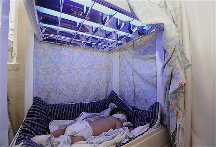 Servet Ergün, AA muhabirine yaptığı açıklamada, hastanelere gide gele artık çocuğunun hastalığını ezberlediğini söyledi. Çocuğunun gözleri önünde adeta eridiğini belirten Ergün, demir profil ve led ışıklarla özel bir düzenek hazırladığını anlattı.