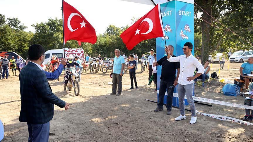 Burada yapımı devam eden Kenan Sofuoğlu Pisti'ne gelen sporcular, 1 kilometrelik özel etabı, yarışı izlemeye gelen milli motosikletçi Kenan Sofuoğlu'nun verdiği startla koştu.