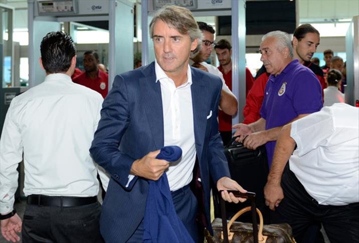 Takım otobüsüyle Atatürk Havalimanı'na gelen Sarı-kırmızılı futbolcuları, bir grup taraftar karşılarken, 3 yıllık sözleşme imzalayan İtalyan teknik direktör Roberto Mancini de kafilede yer aldı.