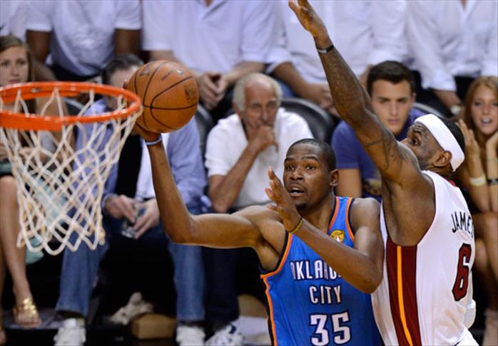 Amerikan Ulusal Basketbol Ligi (NBA) finalinde Oklahoma City'yi 91-85 yenen Miami Heat, seride 2-1 öne geçti. Miami'deki American Airlines Arena'da oynanan maçta Miami Heat'de LeBron James 29 sayı, 14 ribaund ve 3 asistle, Dwain Wade ise 25 sayı, 7 ribaund ve 7 asistle galibiyeti getiren isimler oldu. Oklahoma City'de Kevin Durant'ın 25 sayı ve 6 ribauntluk mücadelesi yenilgiyi önleyemedi. Ayrıca konuk ekipte Russell Westbrook 19 sayıyla oynadı. Serinin ilk maçında rakibine 105-94 boyun eğen Miami Heat, 2. karşılaşmada 100-96 galip gelmişti. Final serisinin dördüncü maçı, 20 Haziran'da sabaha karşı Miami'deki American Airlines Arena'da yapılacak.