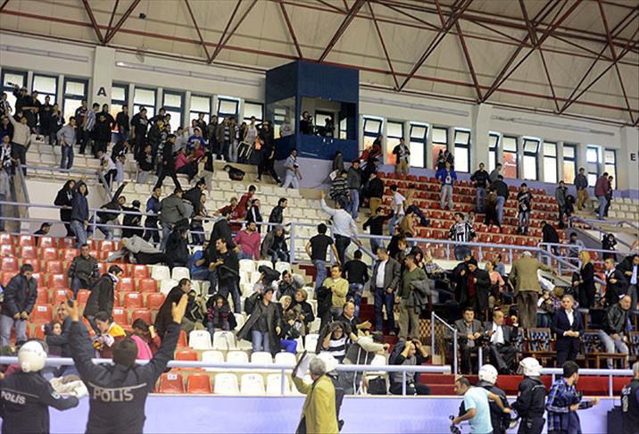 Tribündeki olaylar salonun koridorlarına da yansırken, bu bölümlerde maddi hasar meydana geldiği gözlendi.