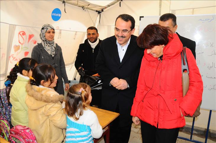 Adalet Bakanı Sadullah Ergin, AP Türkiye Raportörü Ria Oomen-Ruijten ile ülkelerindeki olaylar nedeniyle Türkiye'ye sığınan ve Hatay'ın Altınözü ilçesine bağlı Boynuyoğun köyündeki konaklama tesisinde kalan Suriyelileri ziyaret etti.