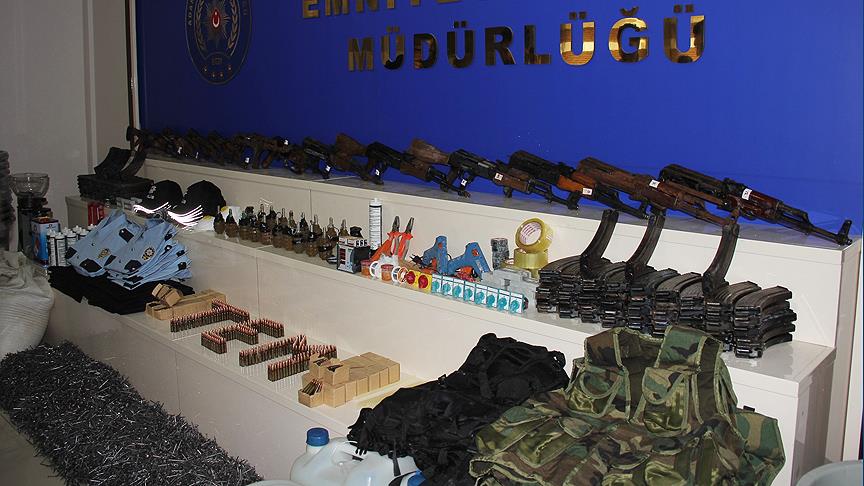 Evde yapılan aramalarda 12 kalaşnikof marka tüfek, 24 el bombası,12 polis üniforması, 1,5 ton amonyum nitrat, 300 kilogram çivi, 12 hücum yeleği, 96 şarjör, bine yakın mermi, bomba yapımında kullanılacak kablo ve benzeri malzemeler ile 240 litre benzin ve yaşamsal malzeme ele geçirildi.