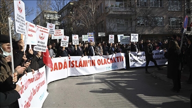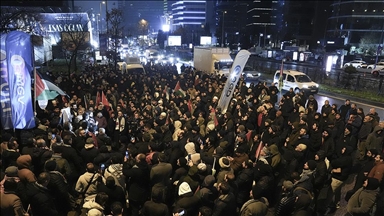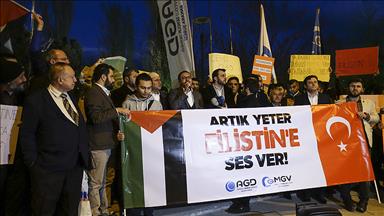 AGD öncülüğünde toplanan grup, Filistin bayrakları ve İngiltere'yi protesto eden ifadelerin yer aldığı dövizlerle İngiltere'nin Ankara Büyükelçiliği yakınlarına geldi. Basın açıklaması öncesinde Kur'an-ı Kerim tilaveti okundu.