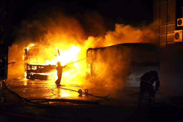 İki otobüsün kundaklanması sonucu çıktığı şüphesi üzerinde durulan yangınla ilgili inceleme sürdürülüyor.