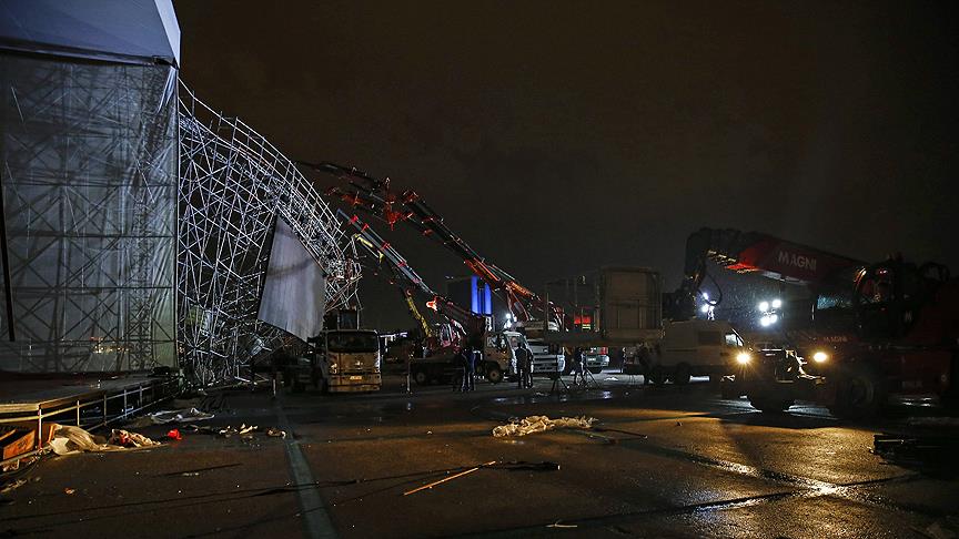 Ankara'da 30 Ağustos Zafer Bayramı etkinlikleri çerçevesinde Atatürk Kültür Merkezi'ndeki (AKM) törenler için kurulan platform şiddetli yağış ve rüzgar nedeniyle yıkıldı.