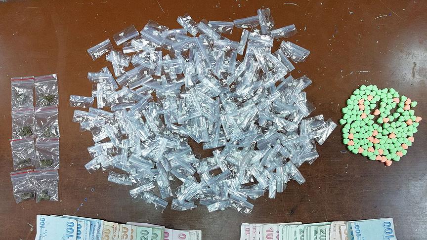 Bunun üzerine harekete geçen Yunus ekipleri söz konusu zehir tacirlerini kaçmalarına fırsat vermeden yakaladı. Ekipler çevrede yaptıkları aramalarda gecekondu bölgesindeki taşlar arasına gizlenmiş halde, şeffaf kilitli poşetlerin içinde satışa hazır 227 paket (60 gram) taş kokain, 149 ecstasy hap ve 8 paket bir tür esrar çeşidi olan sukunk ele geçirdi.