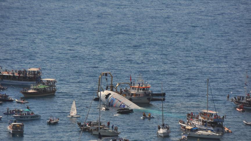 Batırılacak alana getirilen uçağı, sıcak havaya rağmen yerli ve yabancı çok sayıda turist izledi.